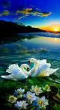 Алмазная вышивка «Закат, лебеди и цветки лотоса» 30x40 см